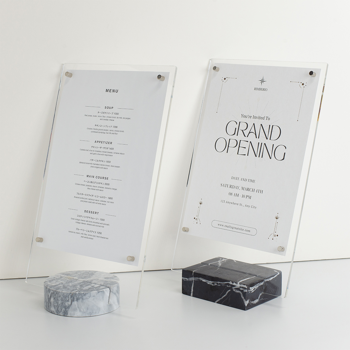 大理石のベースが生み出す安定感と、透明アクリルの軽やかさが、