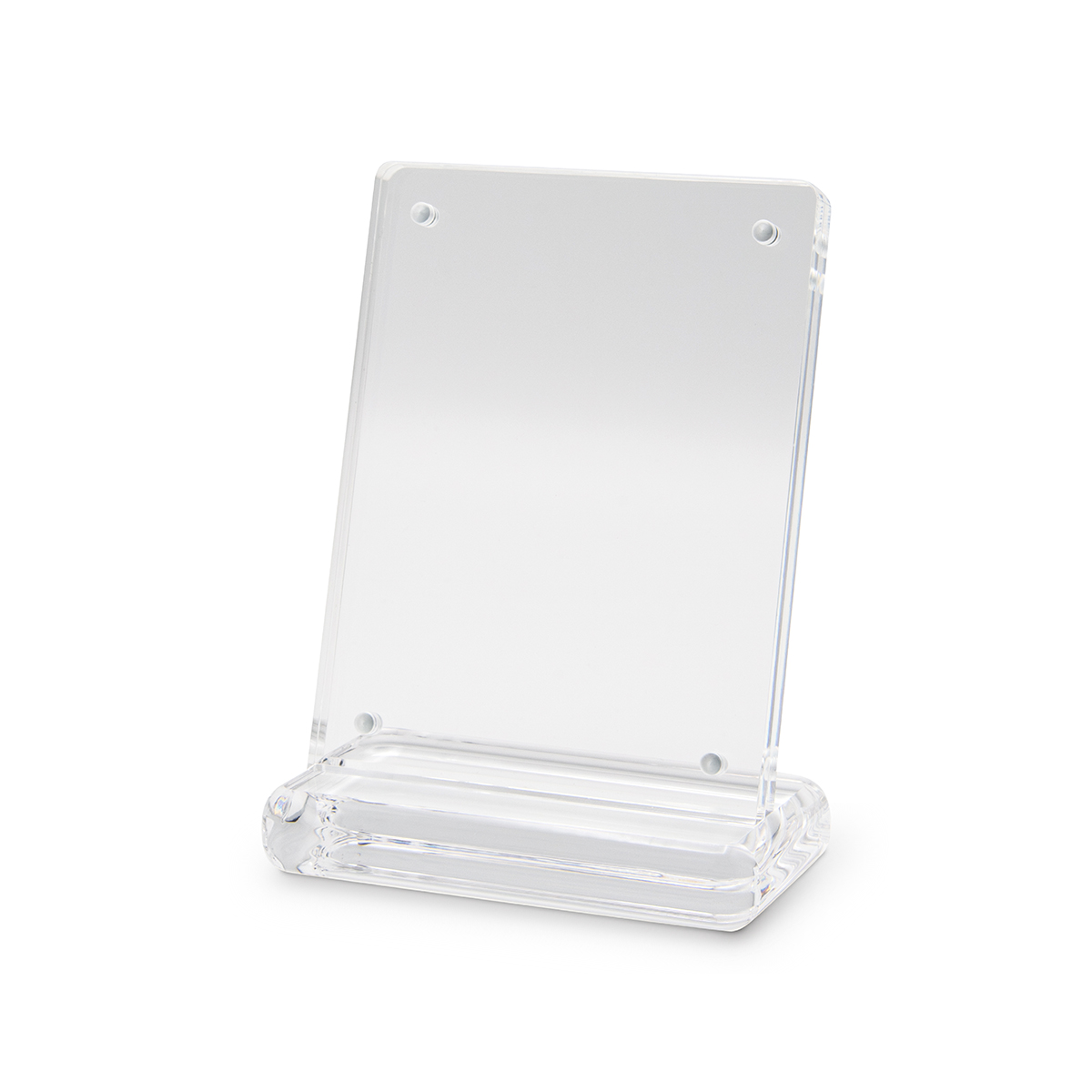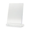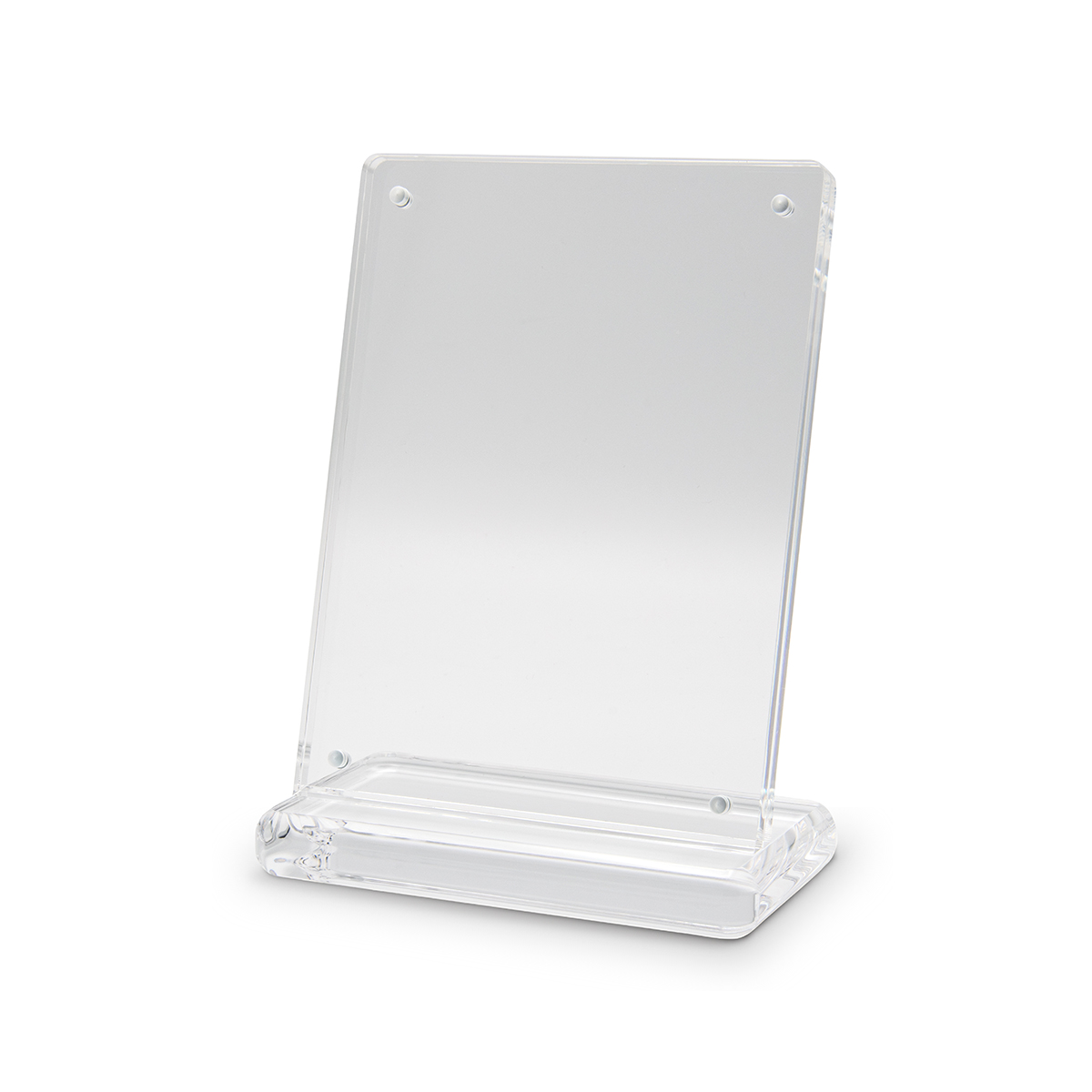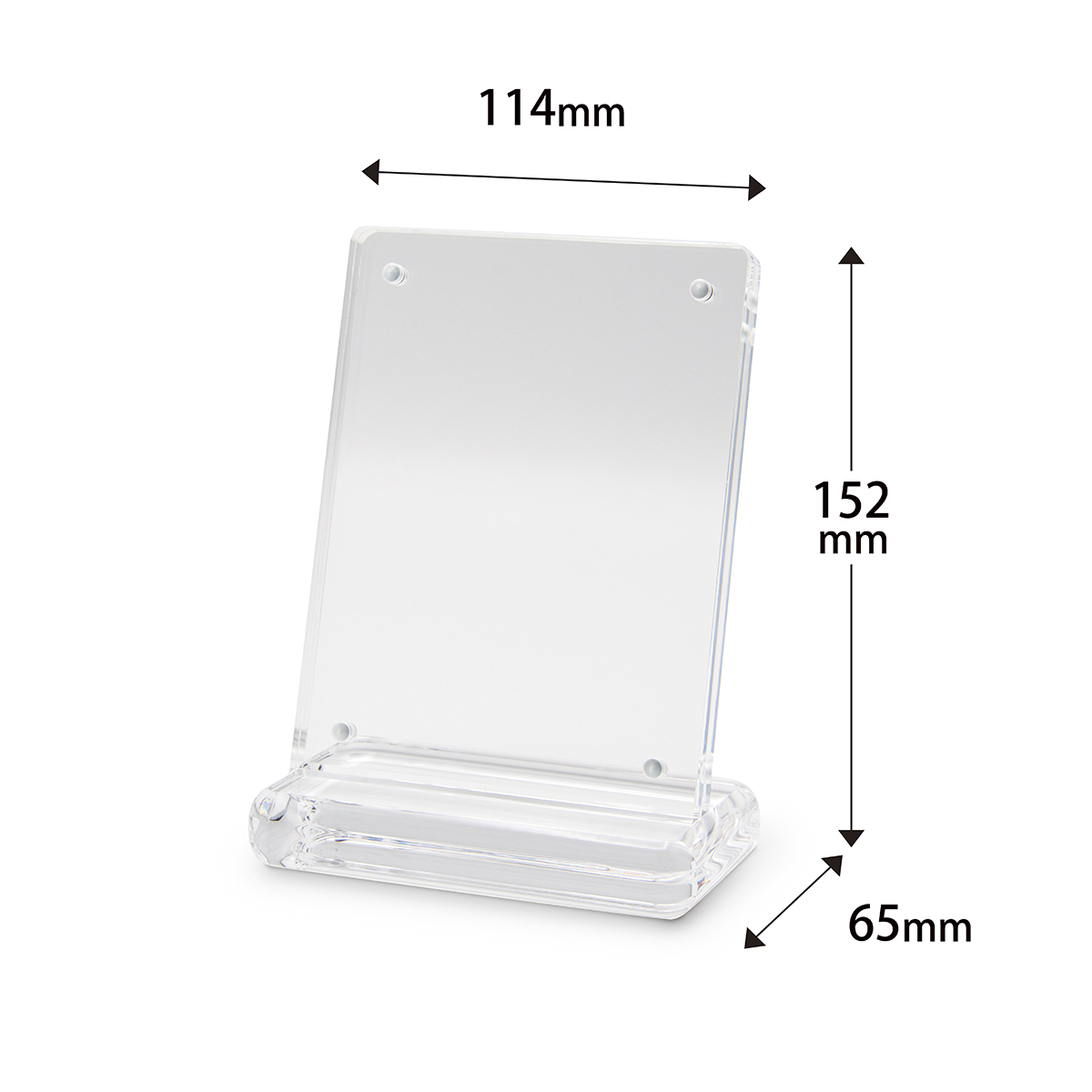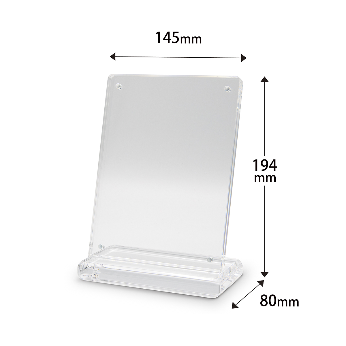 店舗や展示会、オフィス空間に自然となじみながら、情報を美しく引き立てるL型アクリルスタンド。