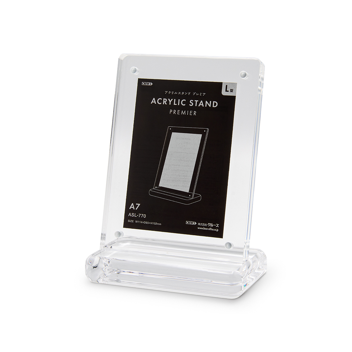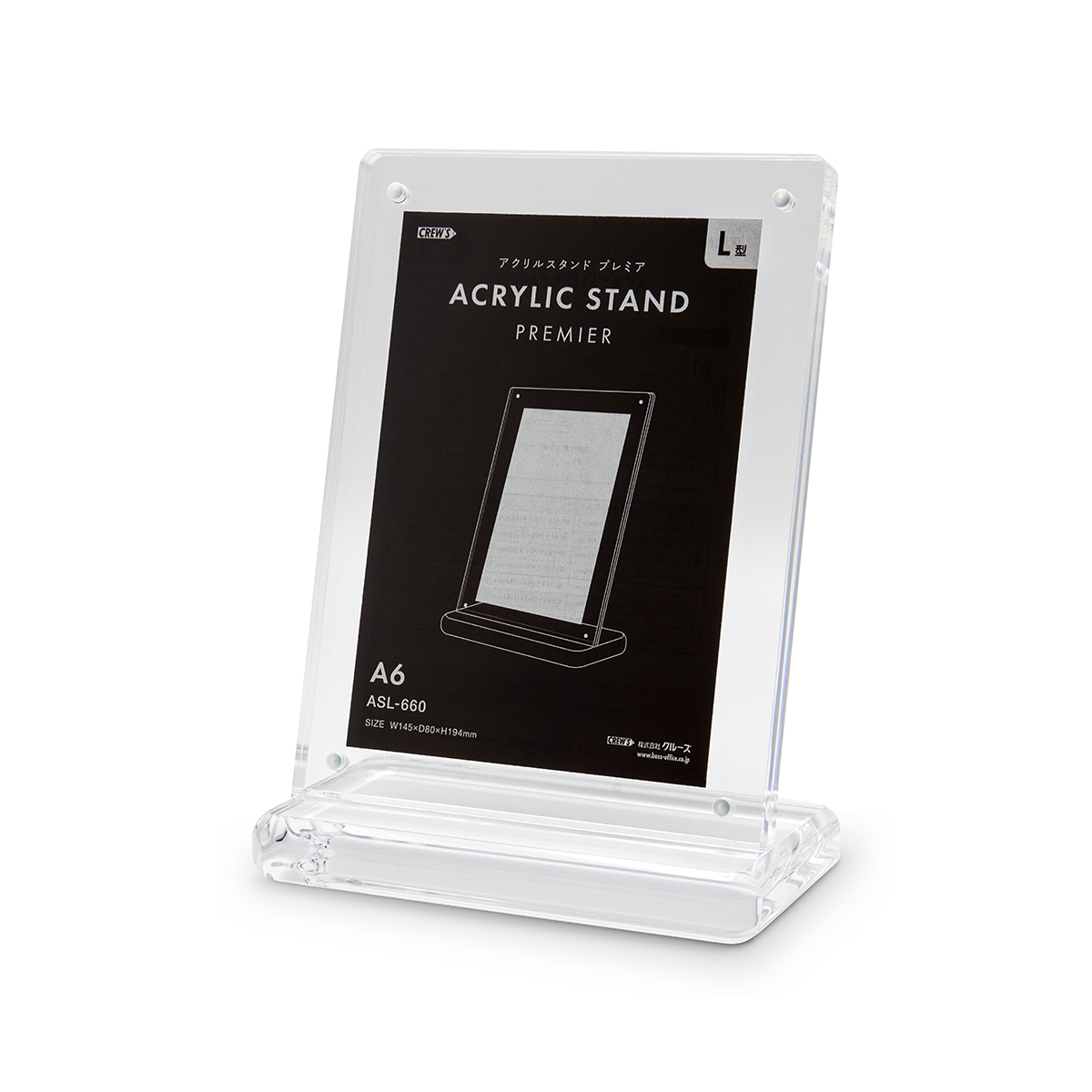 静かな存在感で空間になじむ、L型アクリルスタンドのプレミアモデル。
