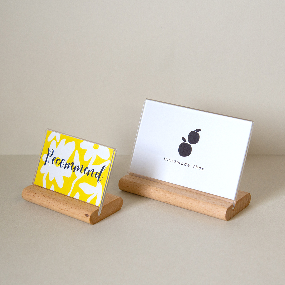 木の温もりを感じるナチュラルなデザインは、店舗のレジ横や展示スペース、自宅の玄関やデスクの上にも自然になじみ、飾るものの魅力を引き立てます。