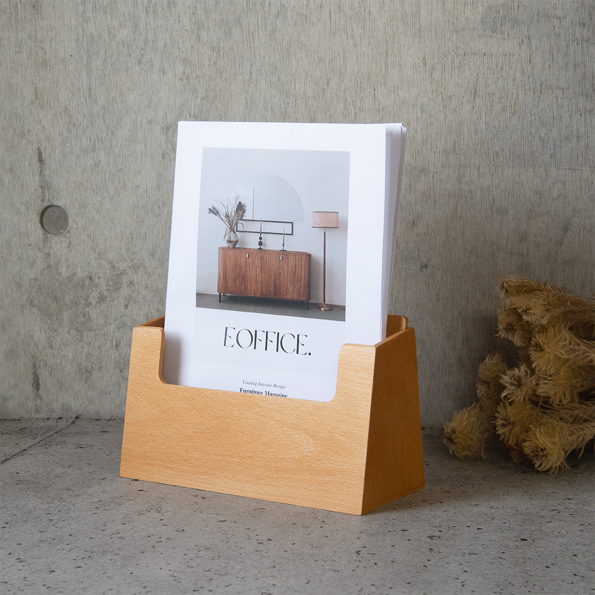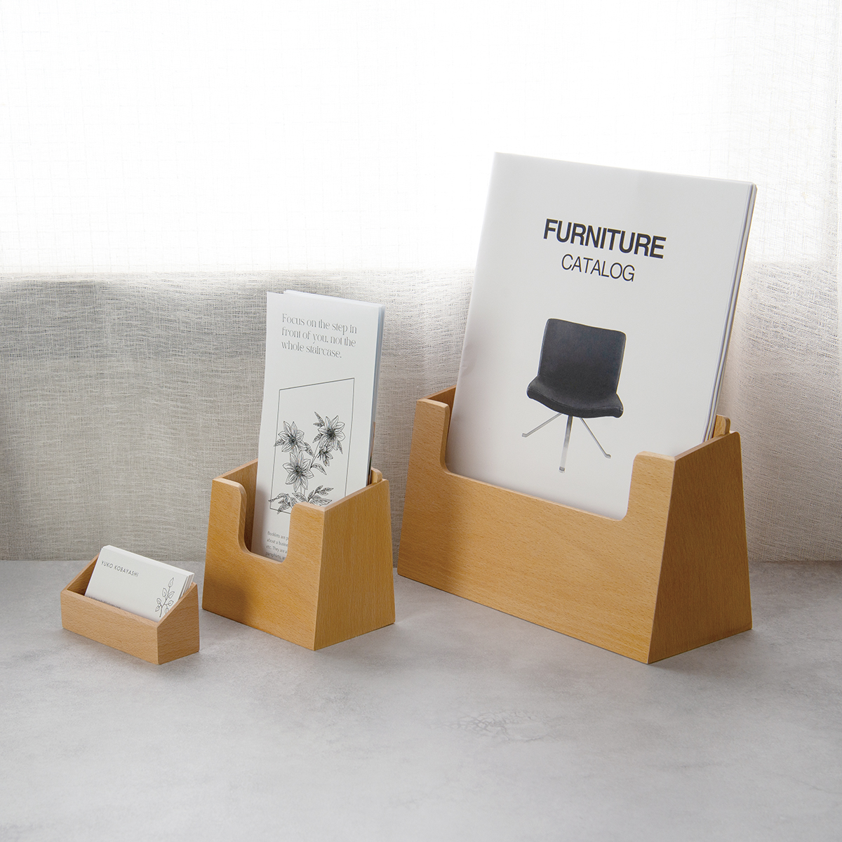 ナチュラルな木の風合いが魅力のカタログスタンド。