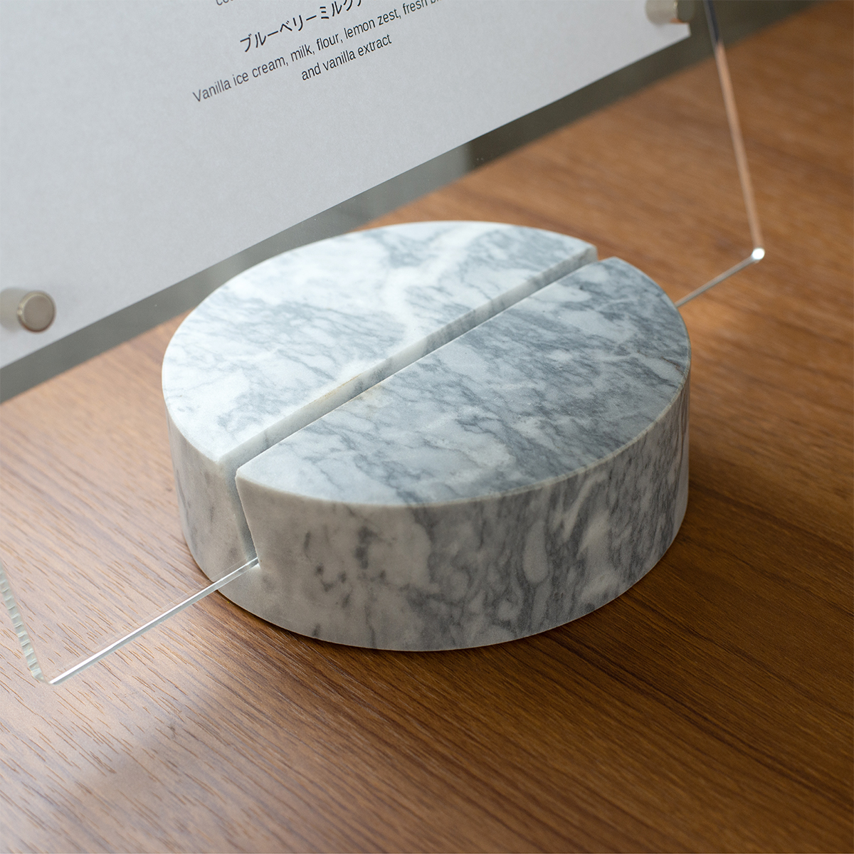 天然の大理石を使用した、重厚で上質なサインホルダー(丸型)。