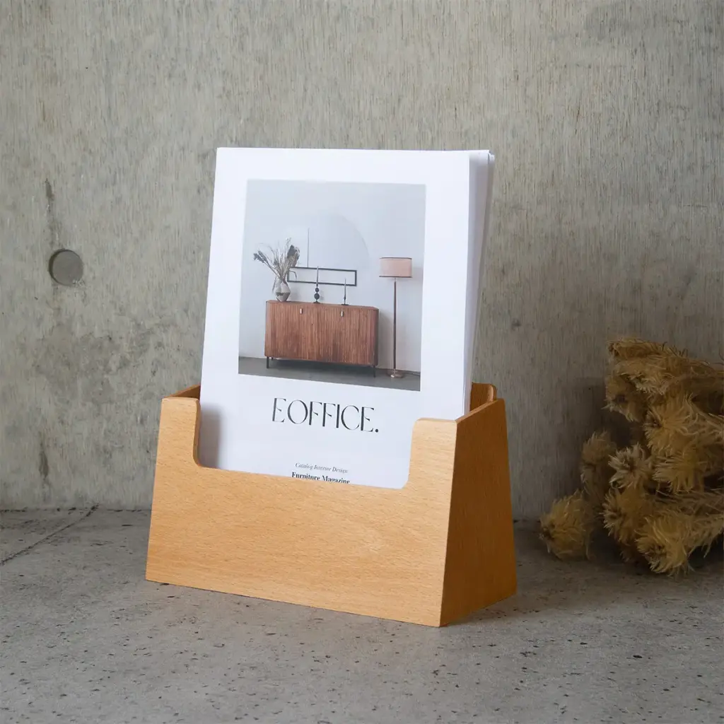 Natura Fixturesで取り扱っている木製カタログケースは、ナチュラルな木の質感は、紙の情報を主張しすぎることなく、空間の役割を邪魔せず、成立させてくれます。
