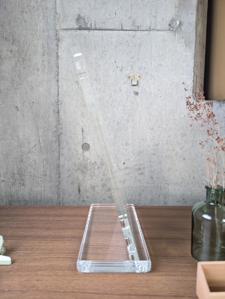 重厚なアクリル素材なので、長期間の使用でも歪まず、透明感を保ち続けます。