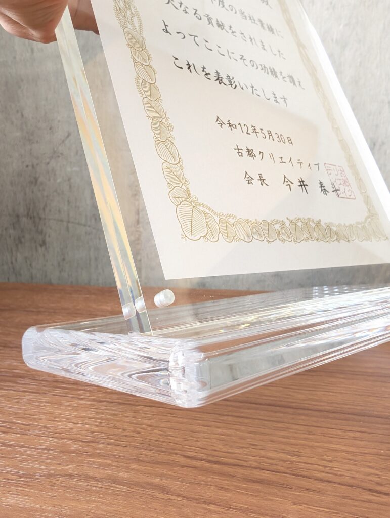 洗練された透明感としっかりとした存在感で、登録証や認定証を上質に引き立てます。