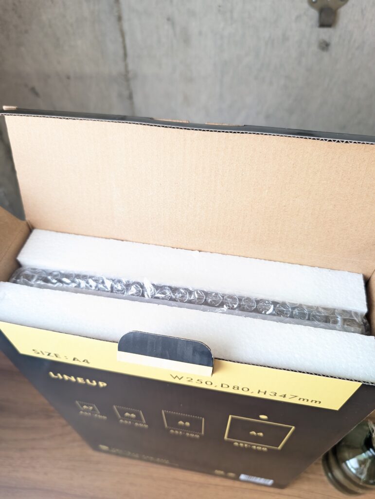 2枚のアクリルの間に紙を挟むだけの簡単構造で、留め具やネジは不要。